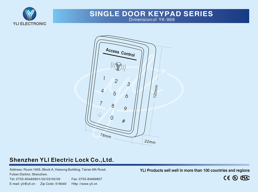 YK-968 is a type of standalone access control keypad supporting contact-less card reading and password for exit and entry,easy to operate,quality reliable.