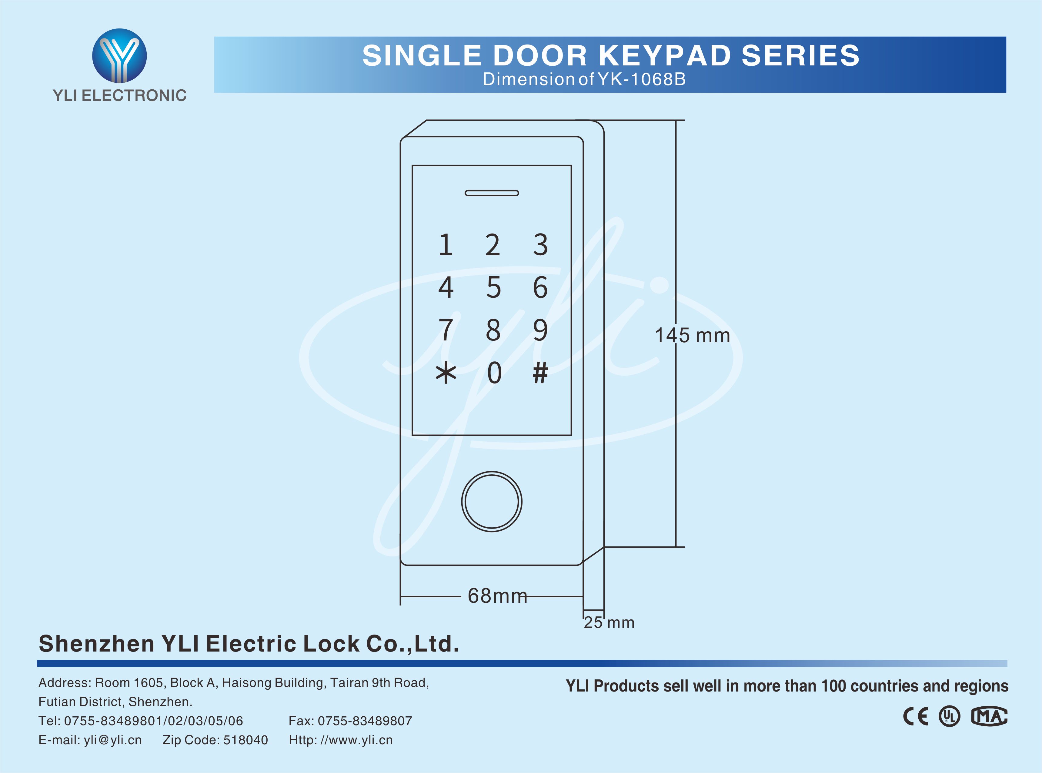 YK-1068 is a fingerprint access controller with touch keypad and metal cose. It uses Atmel MCU assuring stable performance and low-power circuit makes long service life. It is IP66 waterproof,it is very suitable for outdoor use.