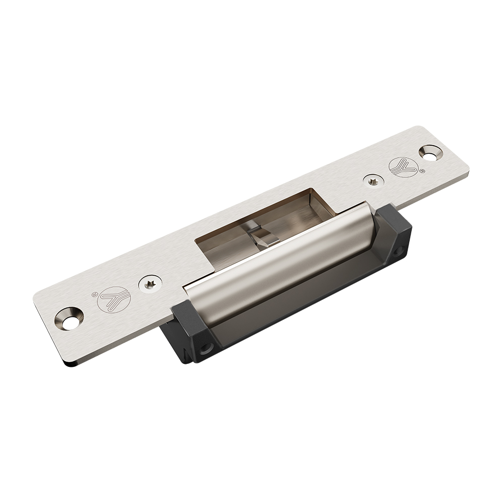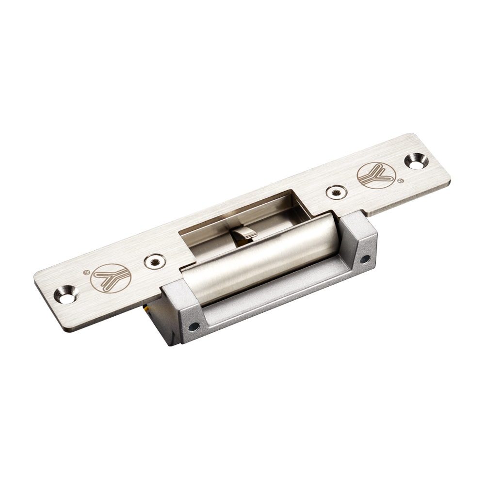 A new-type electric strike is integration of lock body and faceplate.Electromagnetic part works as linkage with retainer,maintains attracting working condition when electrified,which means unlocking;when power's off,spring returns then locks.Lock body adopts die casting Zinc alloy.Utilizes precison casting on bolt(surface polishing),bi-directional voltage,12V/24V optional.Suitable for wooden door,metal door,PVC door etc.