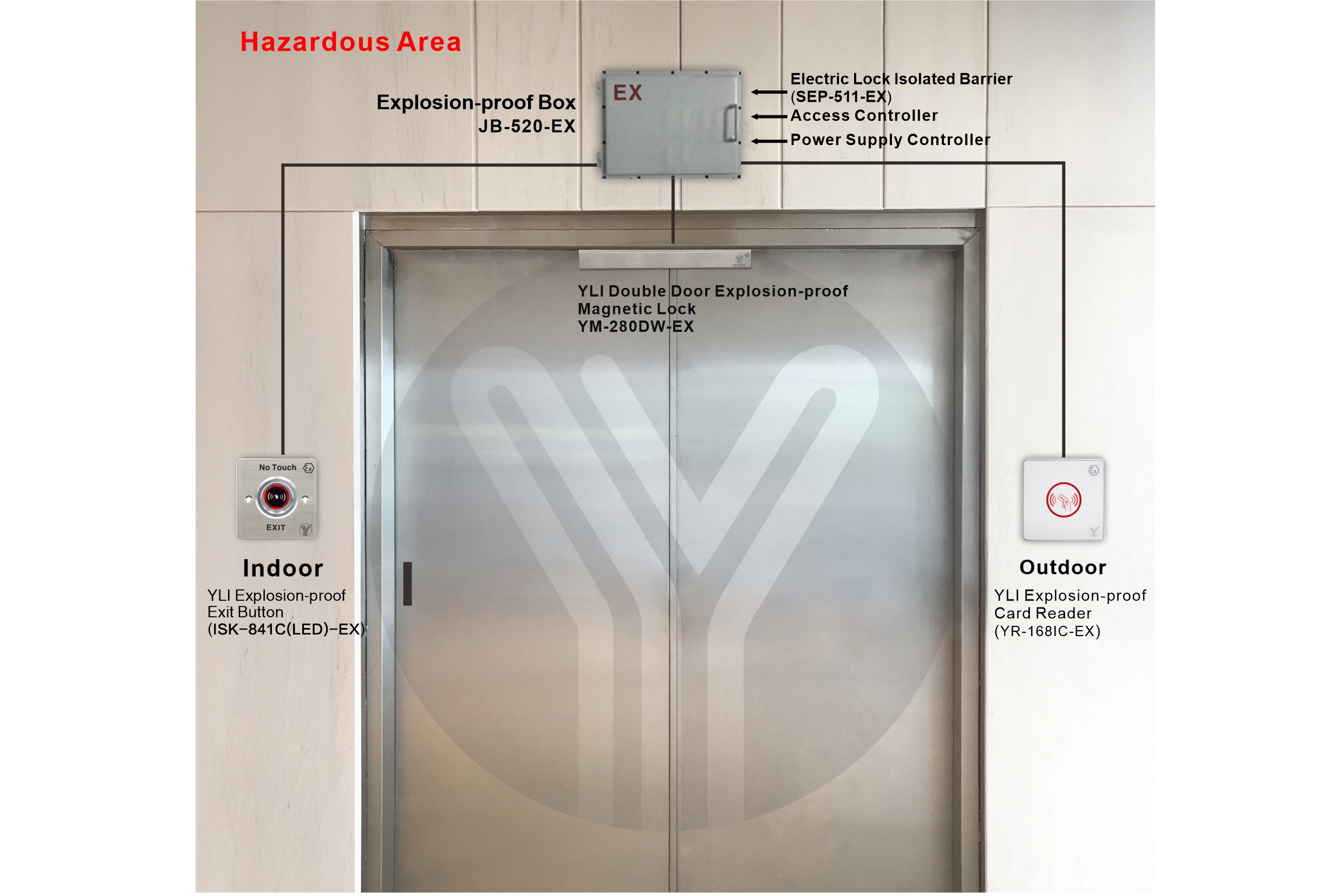 Explosion-proof magnetic lock is a kind of intrinsically safe electromagnetic lock that can be used in inflammable and explosive gas environment. It has simple structure, easy installation and maintenance, wear resistance, high reliability, and can be unlocked by power failure to escape in case of danger. It is especially suitable for petrochemical and other inflammable and explosive places.The explosion-proof electromagnetic lock produced by YLI are designed and manufactured in accordance with the relevant provisions of EU regulations EN IEC 60079-0:2018, IEC 60079-11:2012, EN 61241-11:2006.