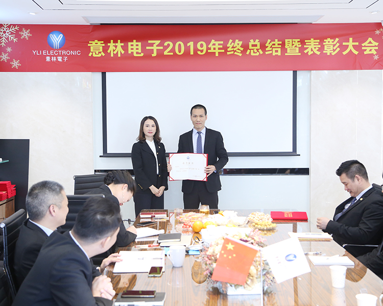 2020年1月17日,意林電子隆重召開2019年年終總結大會暨表彰大會!會議上,總經理岑總回顧總結了2019年取得的成績,展望規劃了2020年的工作目標。同時表彰了2019年度在不同崗位上取得優異成績的優秀員工。會議上,各部門領導管理人員、分公司經理分別在會議上作出總結匯報及具體的工作建議,還對為公司發展做出努力貢獻的團隊及個人進行表彰和獎勵,并動員公司全體職員以先進為榜樣,團結拼搏、進取敬業、全心服務、向更高目標穩健進步,再創佳績。