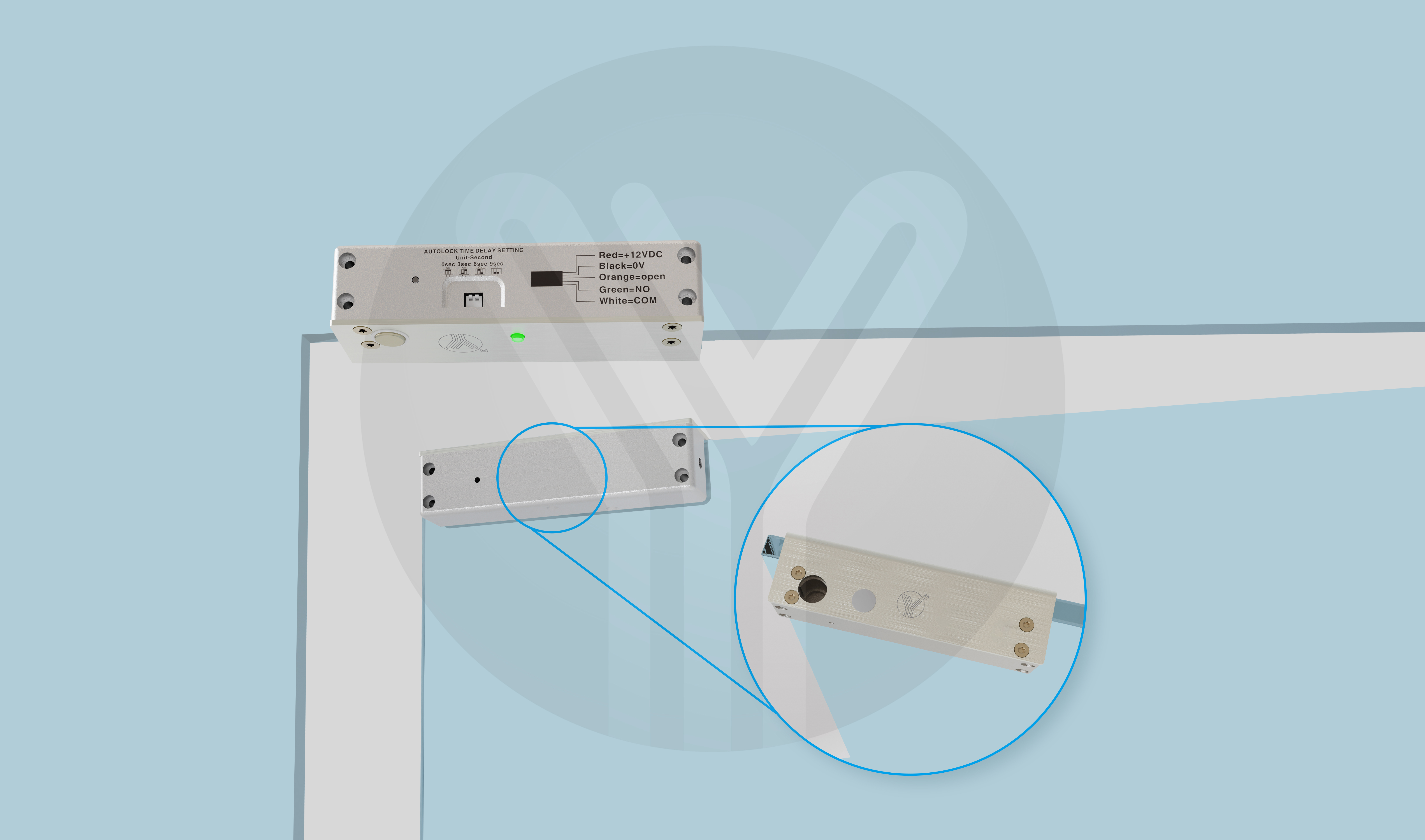 自行設定0.3.6.9秒上鎖延時時間,以免門扇剛關閉時處于擺動狀態,經過設定延時時間后,門扇完全靜止后,電插鎖才啟動上鎖動作。